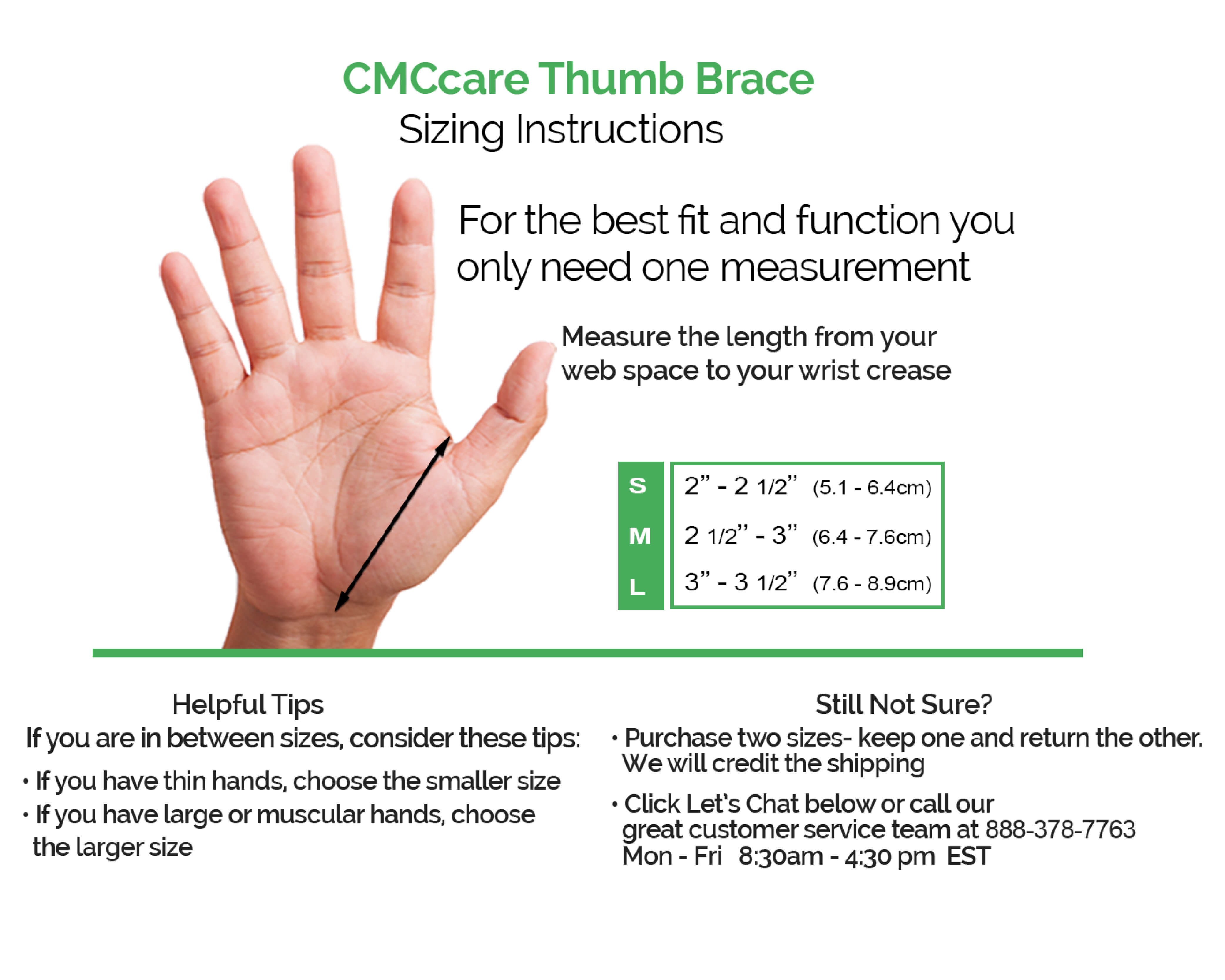 While the CMCcare is designed to fit all thumbs, it does work best for those whose thumbs have a “swan-neck” deformity. The CMCcare helps hold the bottom of your thumb bone in its proper place so it does not slip on the small wrist bone underneath it. When the brace is properly fit, it keeps the bone of the thumb and the wrist or carpal bone it connects to from grinding on each other and causing pain when you grip or pinch.