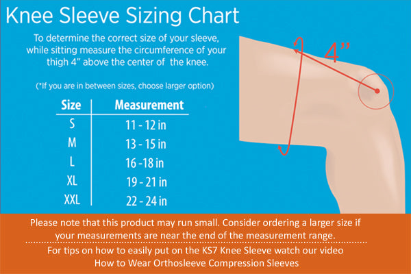 Please monitor your knee condition carefully and remove the KS7 Compression Sleeve if you experience skin discoloration, temperature change or tingling sensations and discuss any changes with your health care provider.