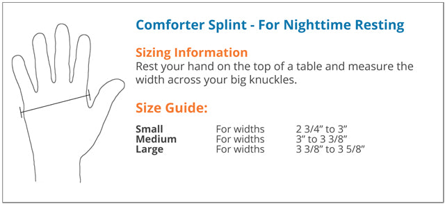 Wear: The Comforter Splint is recommended for nighttime use to rest your fingers and wrist in a stress-free position.