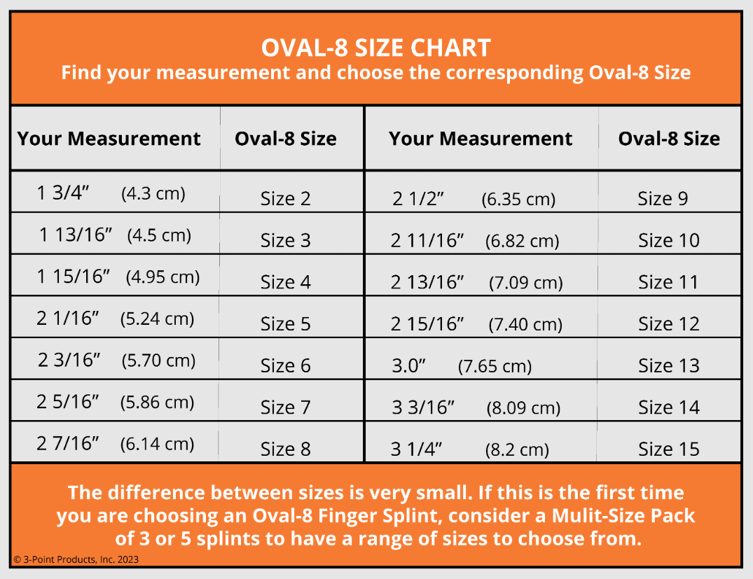 For splints to work effectively, they need to fit correctly. Measuring your finger is necessary to find the correct size Oval-8 Finger Splint. Follow the instructions and watch the video in the Oval-8 Finger Splint Guide for step-by-step instructions.